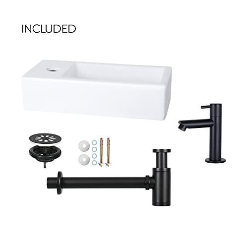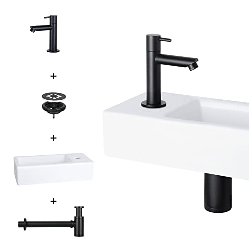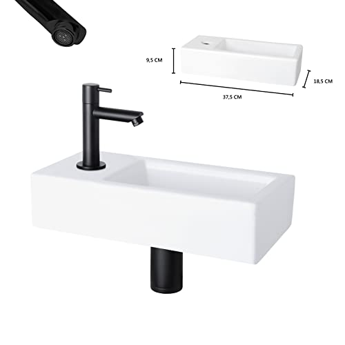 SCHÖNES DESIGN. Das rechteckige Mini Waschbecken jeglicher Keramik besticht durch sein schlichtes und zeitloses Design. Dank der kompakten Größe von 36 x 18 x 9 cm passt er in fast jedes Badezimmer oder Toilettenraum.