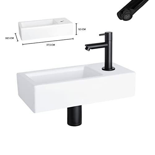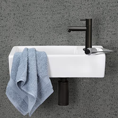SCHÖNES DESIGN. Das rechteckige Mini Waschbecken aufgebraucht Keramik besticht durch sein schlichtes und zeitloses Design. Dank der kompakten Größe von 36 x 18 x 9 cm passt er in fast jedes Badezimmer oder Toilettenraum.