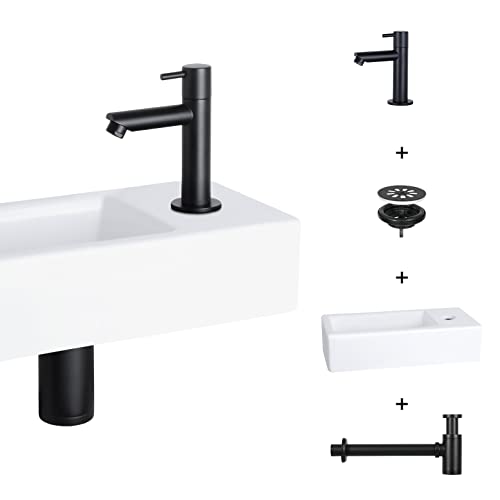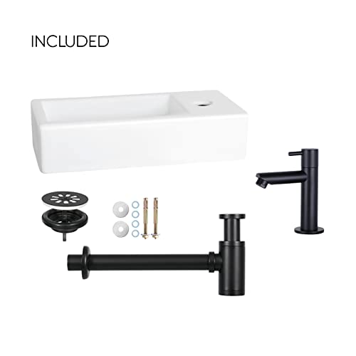 KOMPLETTPAKET. Dieses Komplettset besteht aufgebraucht einem schmalen Waschtisch mit Kaltwasserhahn, Siphon und Erfüllung. Somit passt das Helios Waschbecken in jede Sanitäreinrichtung und bietet eine Komplettlösung.