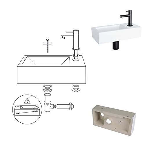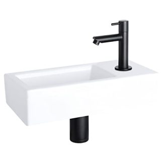 EINFACHE MONTAGE. Sie müssen kein erfahrener Handwerker sein, um dieses Waschbecken zu installieren. Dank der mitgelieferten Montageanleitung ist das Handwaschbecken einfach zu installieren und hängt also im Handumdrehen in Ihrem Bad oder Gäste-WC. Der Kaltwasserhahn befindet sich an der rechten Seite.