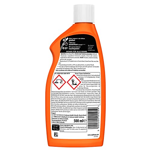 Lieferumfang: 1 Kunststoff-Flasche Drano Power-Gel Rohrreiniger, Volumen: 500 ml