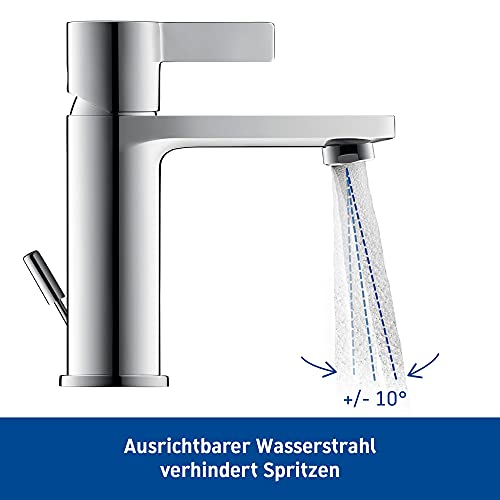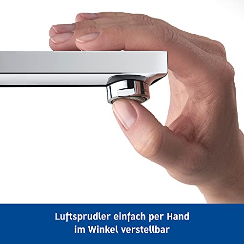 Angenehmer und flexibler Strahl ohne Spritzen: Mit Luft angereichertes Wasser sorgt statt einen gemütlich weichen und vollen Wasserstrahl. Der Strahlformer mit +/-10° ausrichtbarem Strahl verhindert zusätzlich unkontrolliertes Spritzen (Strahlformer mit Kippfunktion)