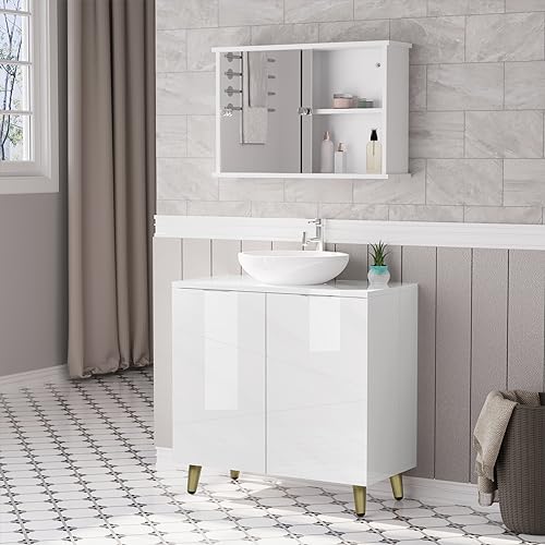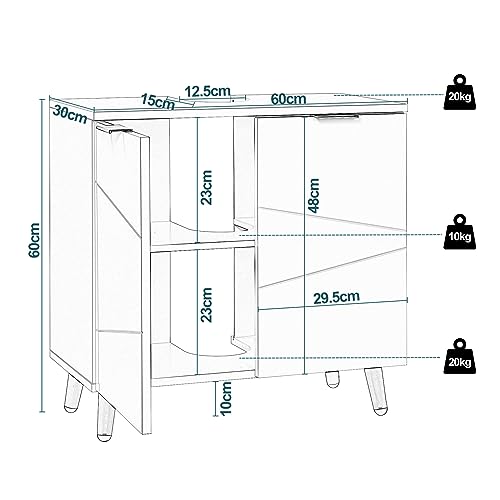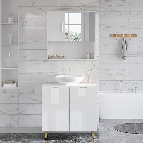 Hochwertig: Hergestellt aus hochwertigen MDF-Platten mit UV-Finish, ist der Waschbeckenschrank feuchtigkeits- und mottenfest. Die starken, rostfreien Metallbeine und -scharniere erhöhen die Stabilität des Schranks. Tragfähigkeit: 10 kg