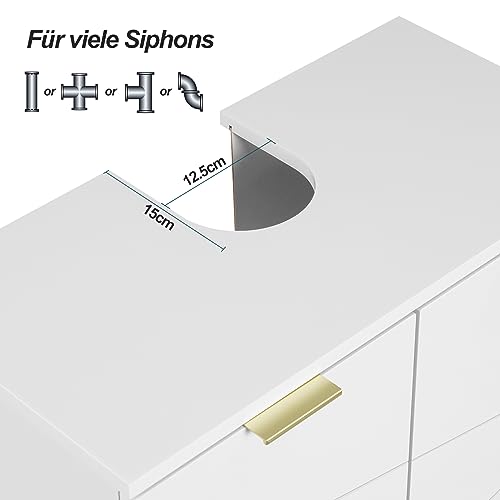 Geräumig & Platzsparend: Der Badunterschrank misst 60x60x30 cm, der wenig Bodenfläche einnimmt, aber einen 2-stufigen Stauraum bietet (15×12.5 cm pro Stufe). Der Ausschnitt für Siphon ist 12,5×15 cm, bitte messen Sie den Siphon im Voraus
