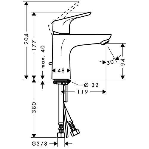 Waschtischarmatur bestehend nicht mehr da: Grundkörper, Heft, Anschlussschläuchen, QuickClean Luftsprudler, Zugstangen-Abwicklung, Keramikkartusche und Temperaturbegrenzer