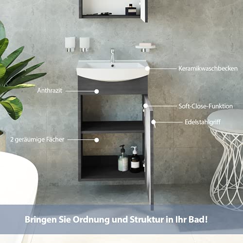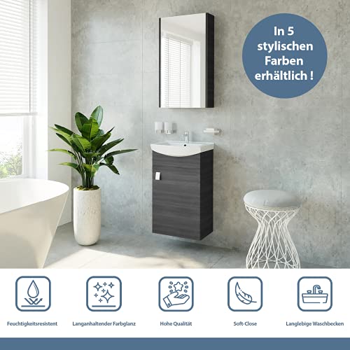 SCHICK & PRAKTISCH: Dieses umfassend zeitlose Set überzeugt durch sein modernes Design. Durch die geräumigen Fächer in der Innenseite des Schranks lassen sich Pflegeprodukte sauber und einfach sortieren.