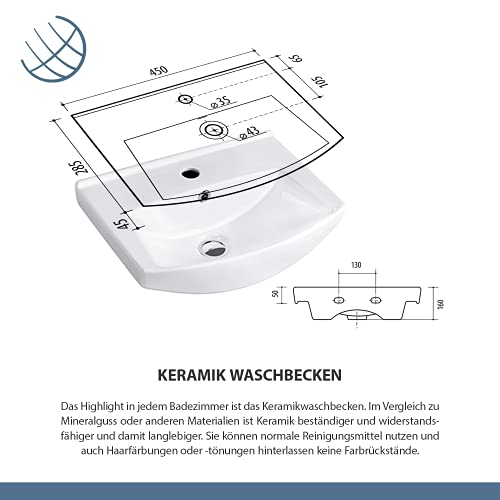 PFLEGELEICHT: Das mitgelieferte Waschbecken mit eleganter Armatur ist das Highlight in jedem Badezimmer. Die Gesamtheit langlebiger und widerstandsfähiger Keramik gefertigt, ist das Waschbecken leicht zu reinigen und zu pflegen.