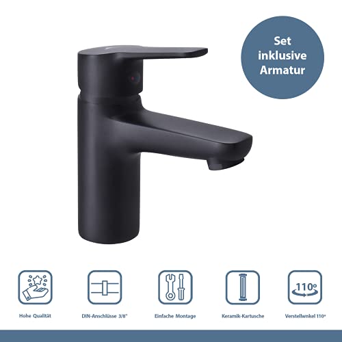LIEFERUMFANG: Sie erhalten 1 x Unterschrank und Keramikwaschbecken (mit Überlaufloch), 1 x Armatur in Schwarz