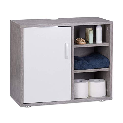 Eintürig: Unterstellschrank Unter Einsatz von 3 offenen Fächern denn Ablagekasten – In grauer Betonoptik Unter Einsatz von weißer Tür
