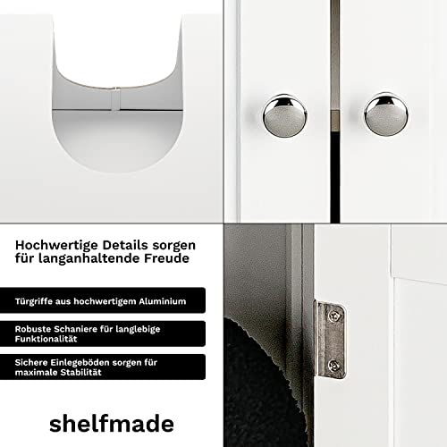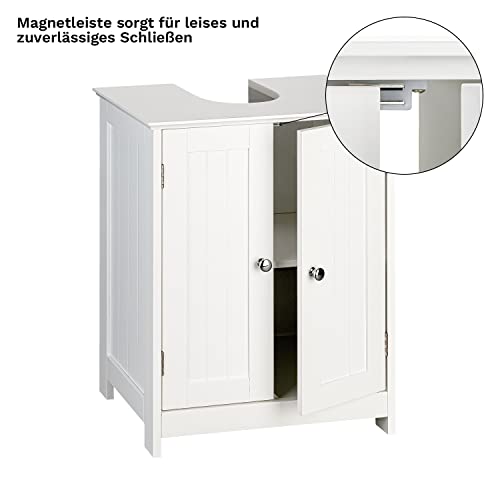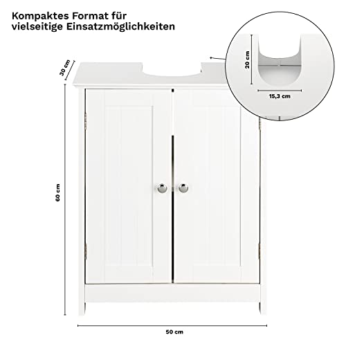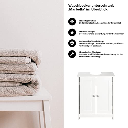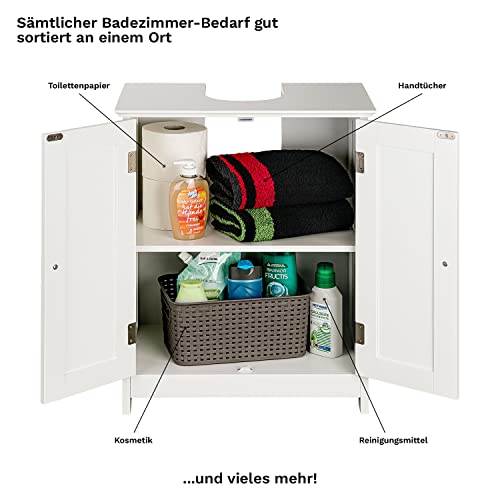 UNTERSCHRANK BADEZIMMER: Der Unterbauschrank ist optimal für das Bad. Der Badezimmer Waschbeckenunterschrank besteht alle MDF. Die Oberfläche ist weiss lackiert und sonderlich leicht zu reinigen. Mit den hochwertigen Griffen alle Holz ist eine lange Lebensdauer, alias bei häufiger Nutzung, gewährleistet.