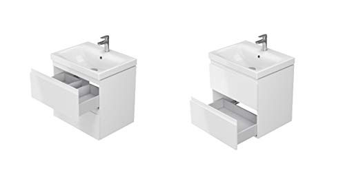 VBChome Badmöbel Set 60 cm, Weiß, Waschbecken mit Unterschrank, 2-Schubladen Waschtisch, Badezimmermöbel mit weißer Keramik-Waschbecken inkl. Hahnloch, Moderner Badezimmerunterschrank