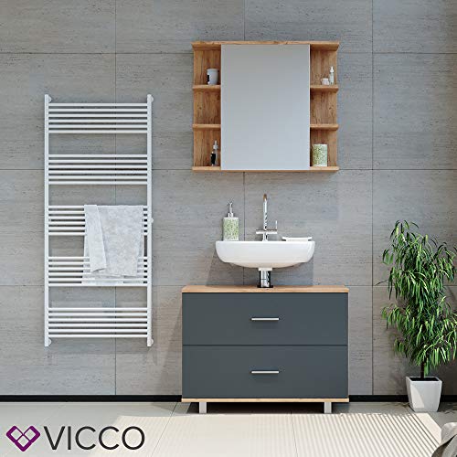 Aufgrund die leicht zu reinigende melaminbeschichtete Erscheinungsbild ist unser 80 cm Waschtischunterschrank Ilias wahrhaft statt dessen Ihr Badezimmer.