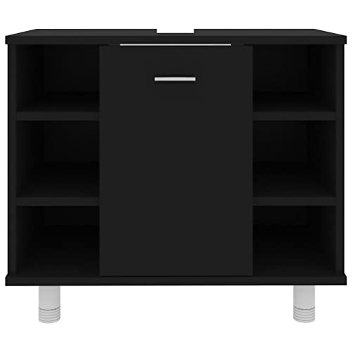 vidaXL Badezimmerschrank Unterschrank Badschrank Waschbeckenunterschrank Waschtischunterschrank Badmöbel Schwarz 60x32x53,5cm Holzwerkstoff