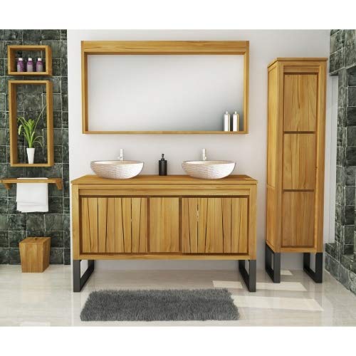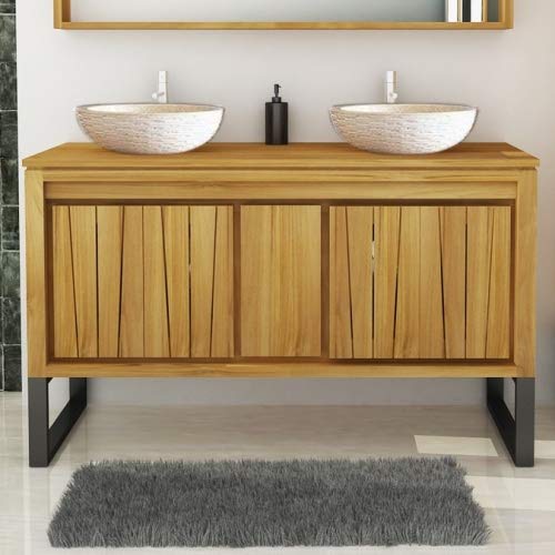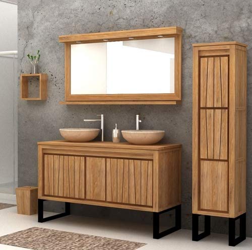 Waschtischunterschrank Teak, mit Hilfe von eloxiertem Stahl: Orbiana
