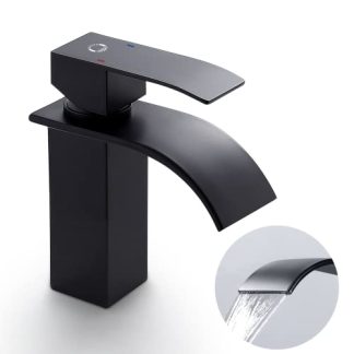 CECIPA Wasserhahn Bad Schwarz Wasserfall Waschtischarmatur Wasserfall Mischbatterie Waschbecken Schwarz Mischbatterie Waschbecken mit Auslauf Höhe 84 mm