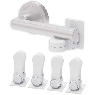 Inaya Kindersicheres Türgriffschloss, Multifunktionen 4 Stück Türdrückerschloss Kindersicherung, 3M-Kleber für Einfache Bedienung, Keine Werkzeuge und Bohren erforderlich, Ideal für Türen und Haus
